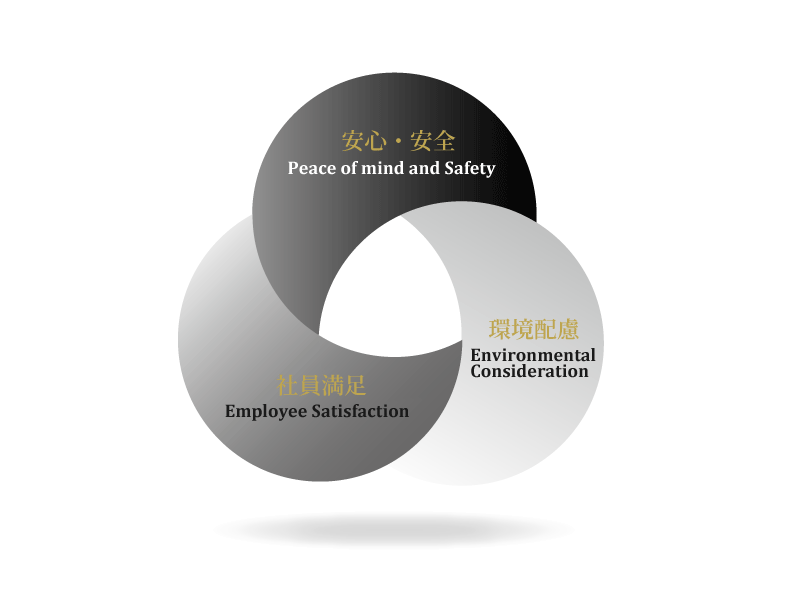 社員が健康で豊かな生活の実現を図りつつ一人一人が社会人としての自覚や責任感を持ち社会の発展に貢献いたします。